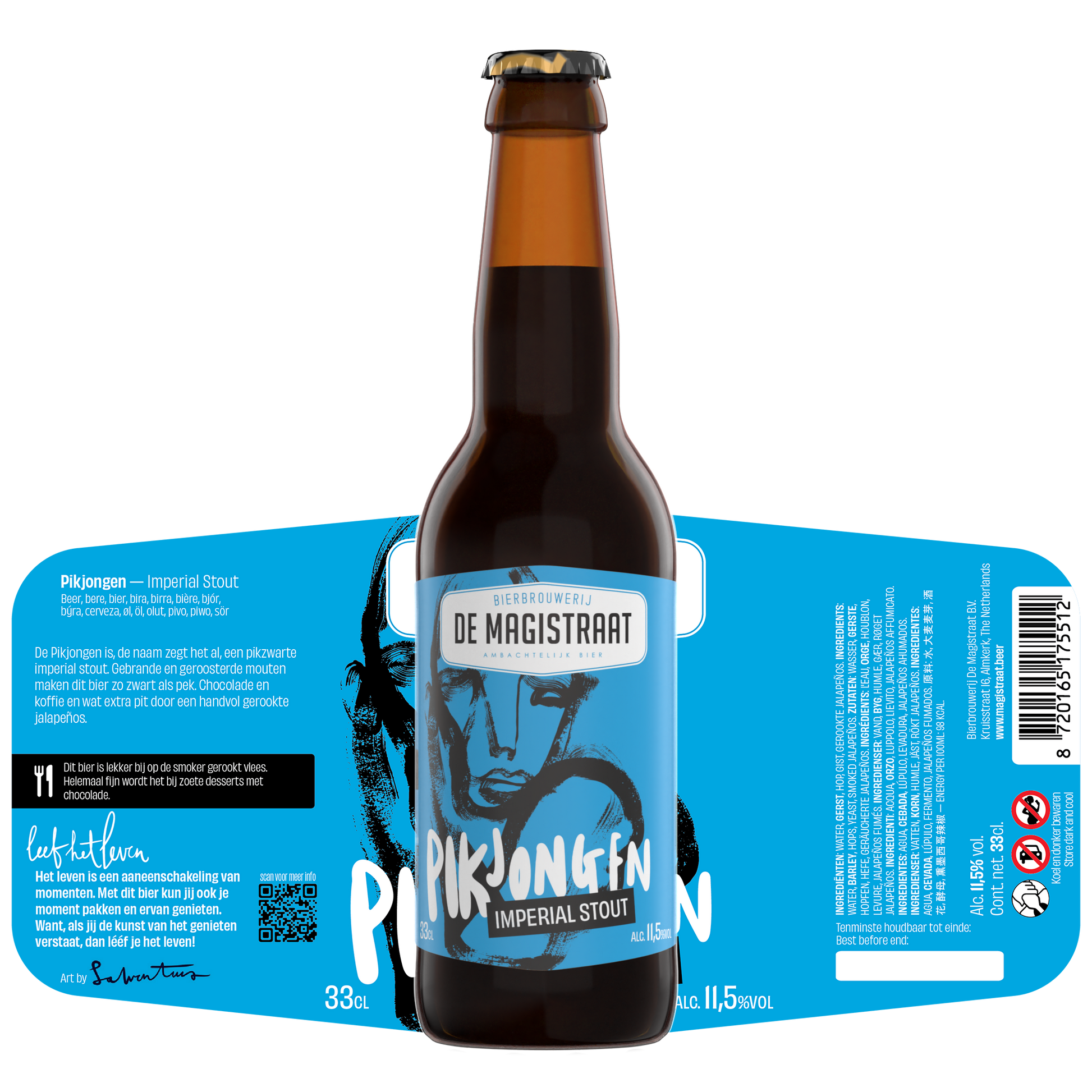 The Pikjongen is, as the name suggests, a pitch-black imperial stout. Roasted and roasted malts make this beer as black as pitch. And the smells and flavors are of a very special order. Finally, during the cold lagering, this boy gets even more flavor by infusing smoked jalapeños (Chipotles).